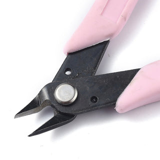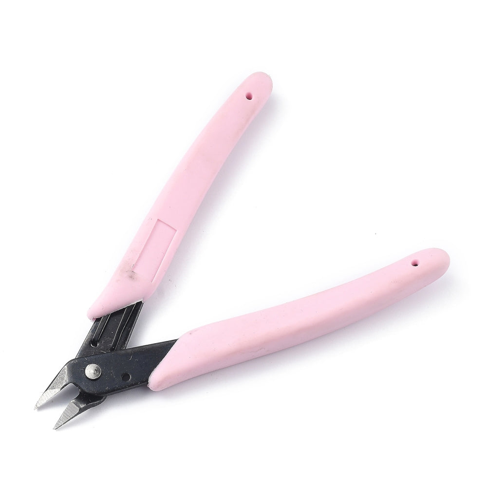 Carbon Steel Jewelry Pliers, Flush Cutter, Shear, with Plastic Handles, Pink, 12.8x4.3x1cm
