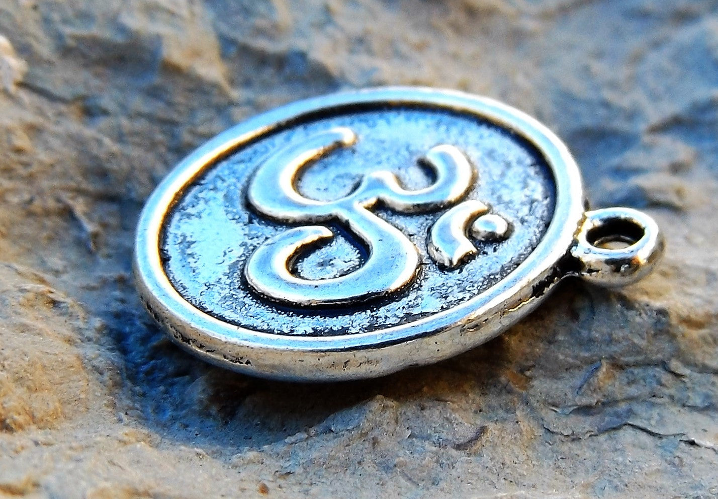 Charm *OHM (Flat Round Solid. 21 x 18 x 2mm). Sold Individually