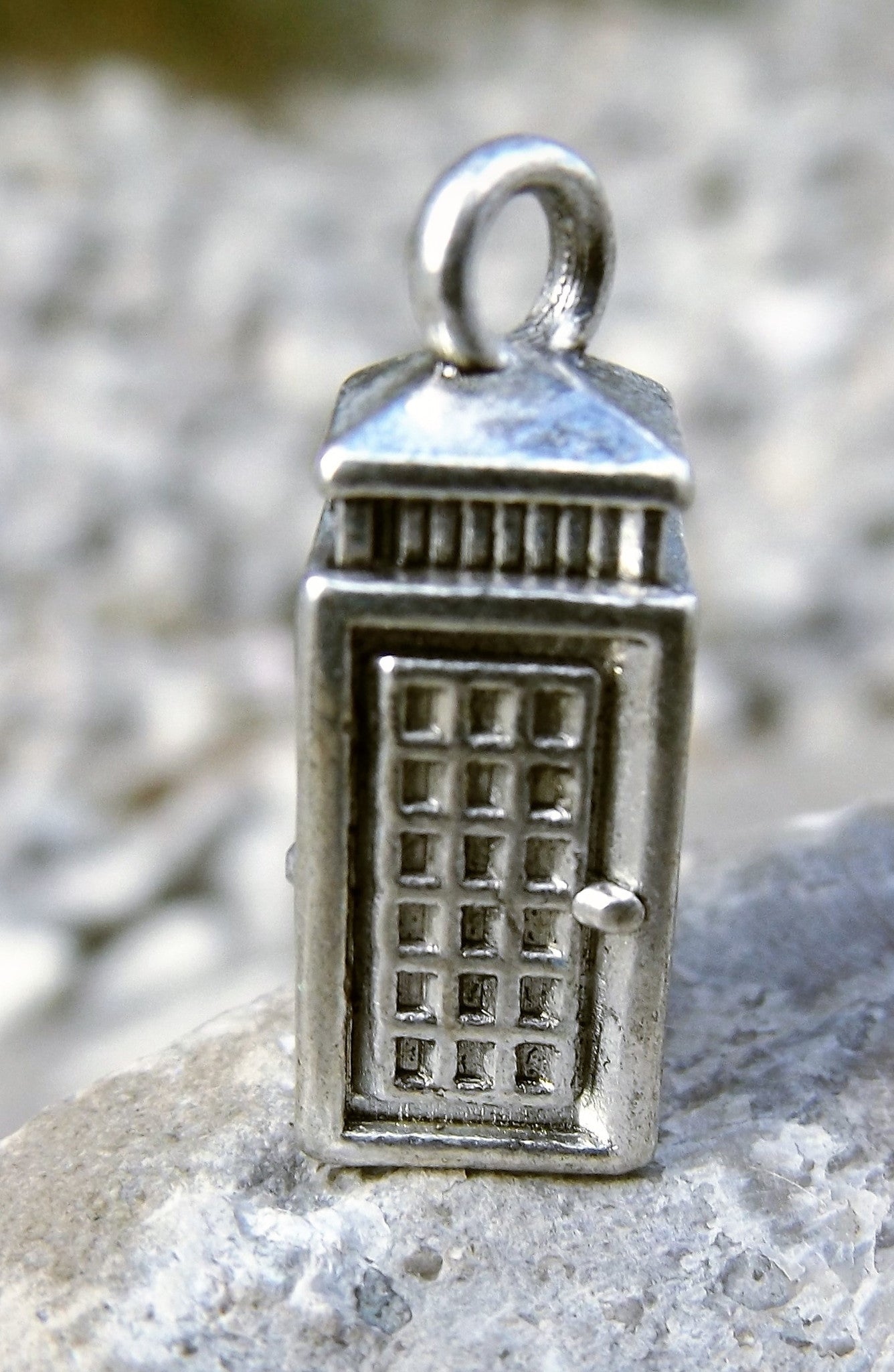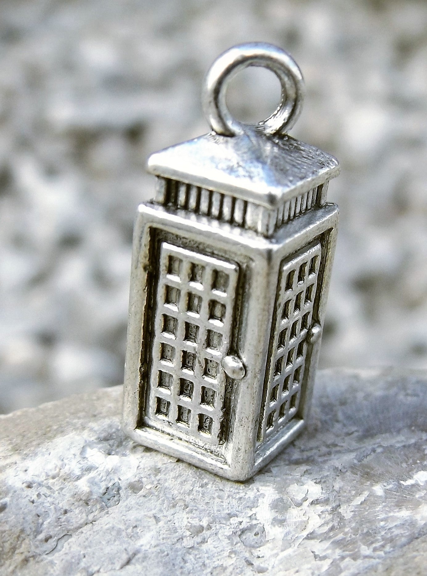 Charm - Telephone Booth (Tardis) 23x8x8mm, Hole: 2~4.5mm *sold individually