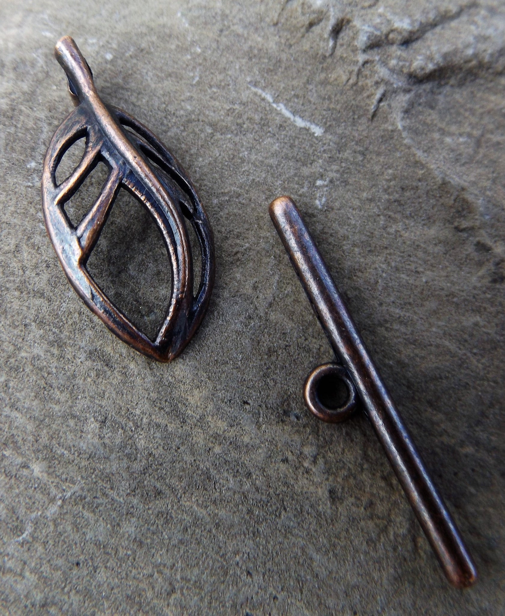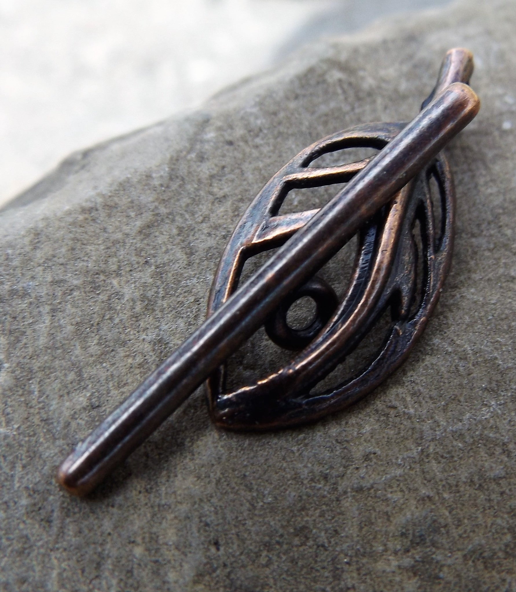 Clasp (Toggle Style) Smal Leaf (Antique Deep Copper Color Metal) 23x11.5x3mm, Hole: 1~2mm *PACKED 3 Clasps