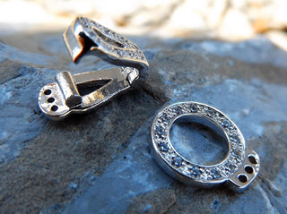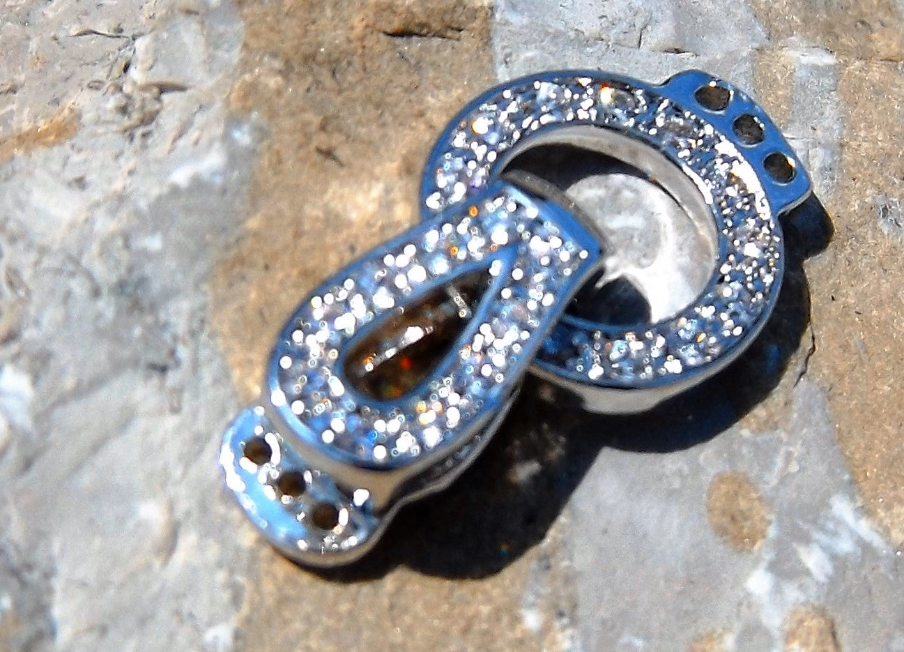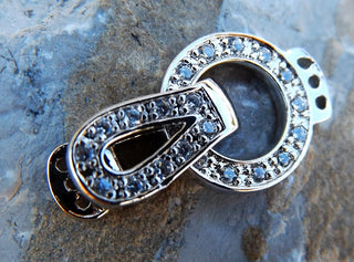 Clasp (Fold Over Watch Band Style) Cubic Zirconia. 3 Strand Platinum, 20x11x4mm, Hole: 1mm. (these are stunners!).