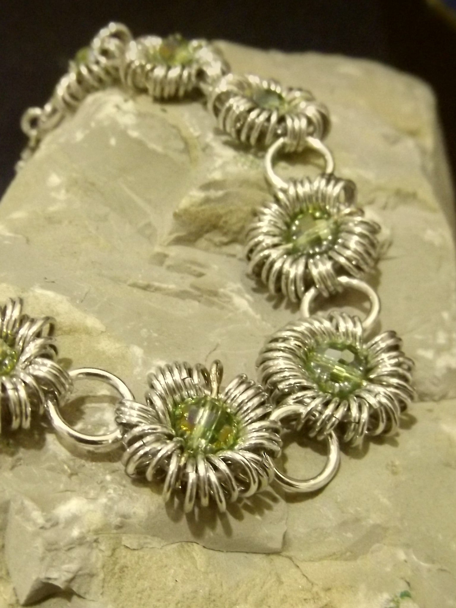 Complete Kit to create the (beautully delicate looking), Coiled Crystals Bracelet Design. Kit includes all necessary anodized aluminum jump rings, findings, Genuine Crystals & full color instructions with photographs. Additional tools required: pair of chain nose pliers.