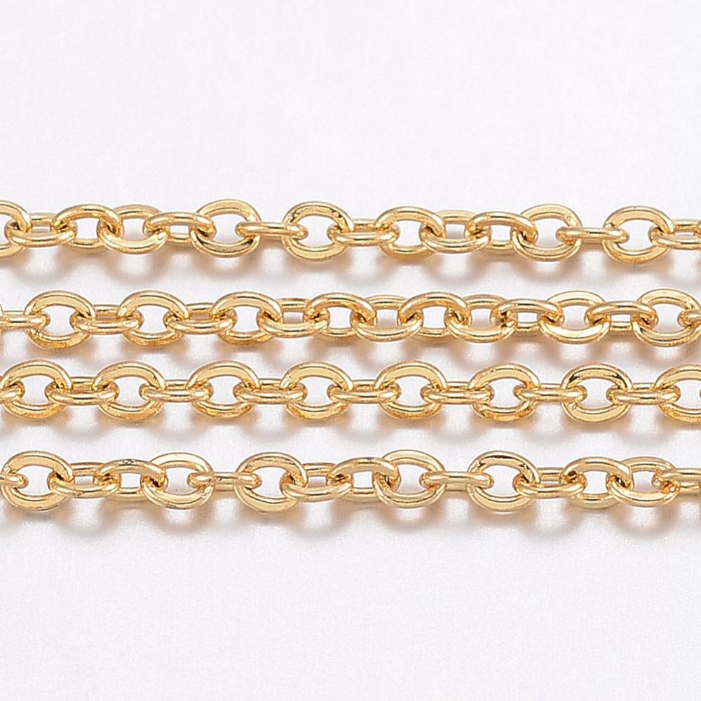 304 Stainless Steel Cable Chains, Soldered, Oval, Real 18K Gold Plated, 2x1.5x0.4mm*Sold by the Foot