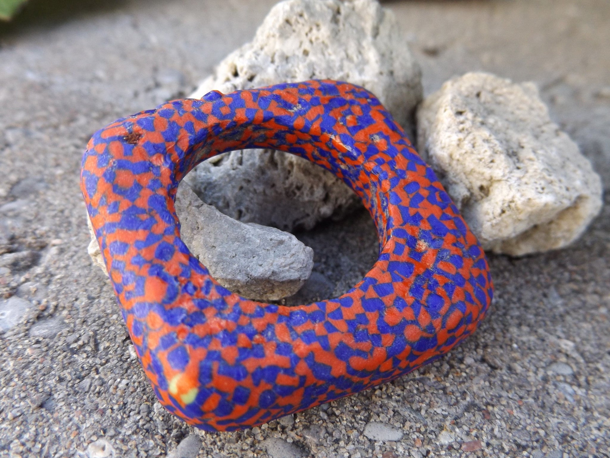 African (Recycled Glass) Hand Crafted Square Focal (Blue and Red) Sold Individually