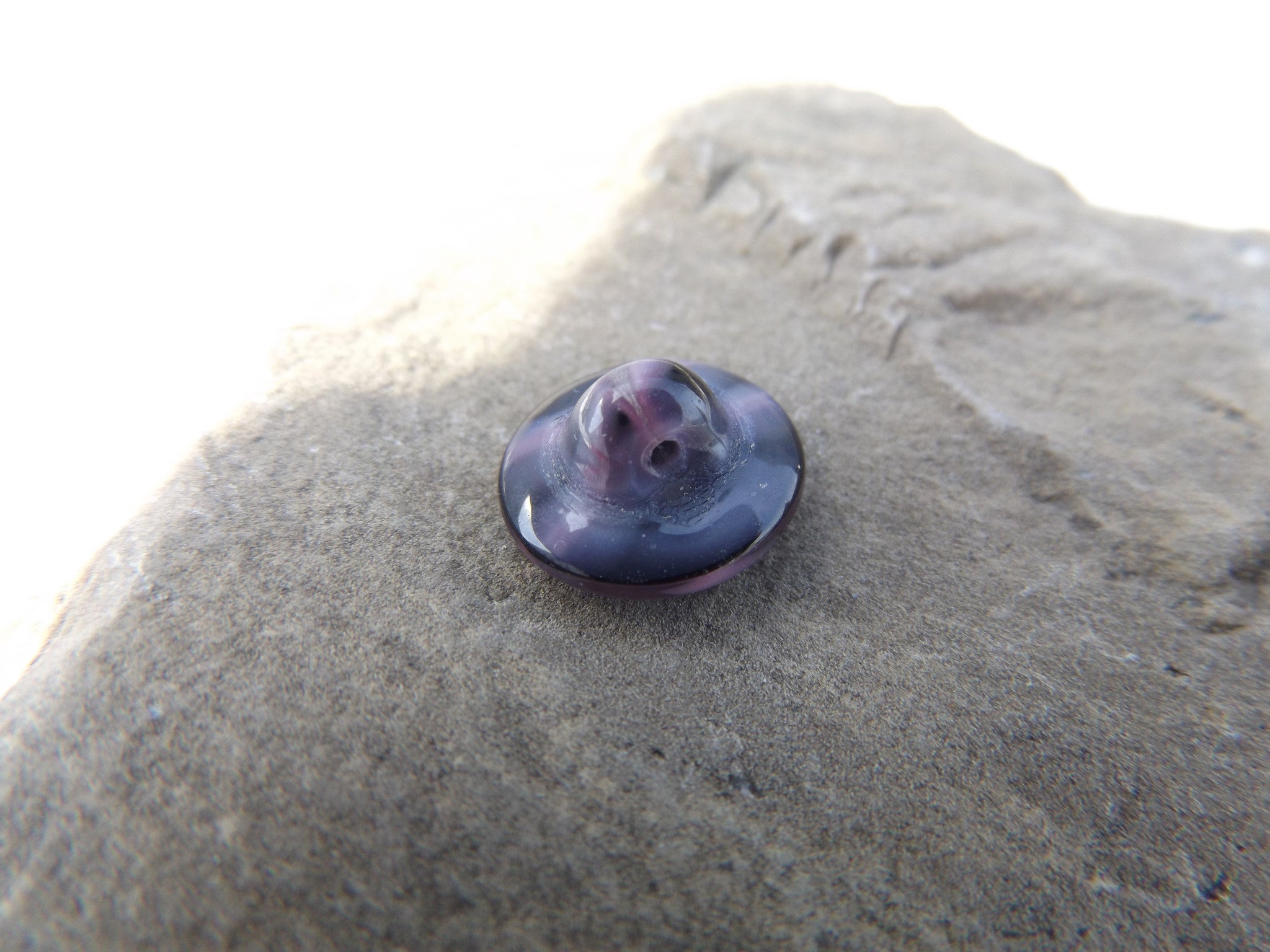 Button (Czech Glass) Pink & Grey Stripes. 13 mm Diam. (sold individually)