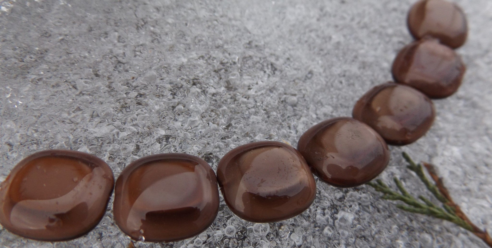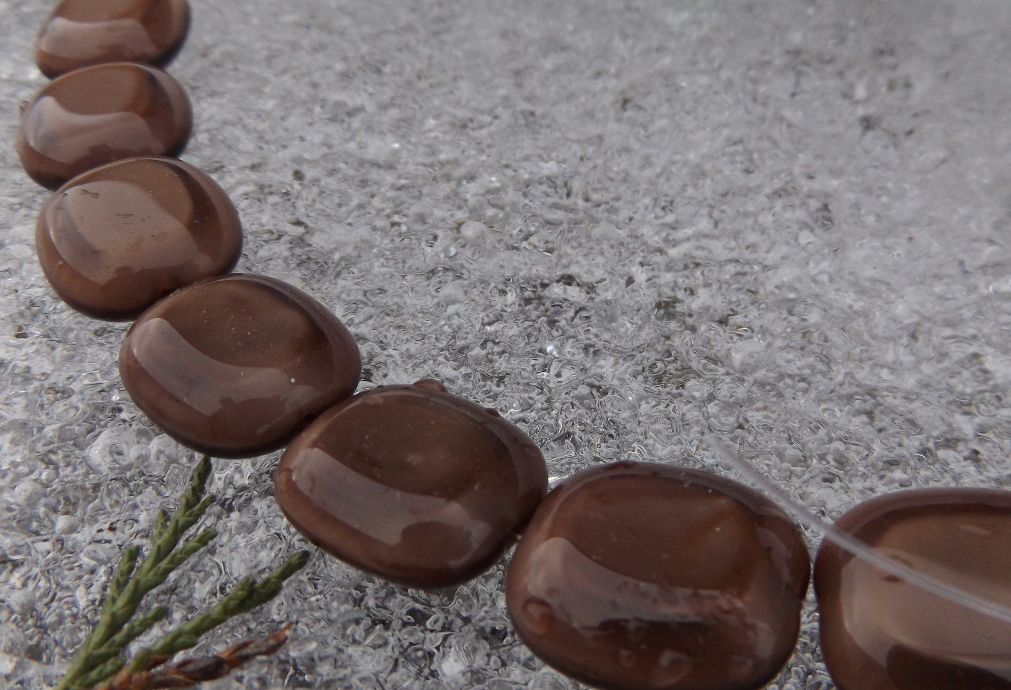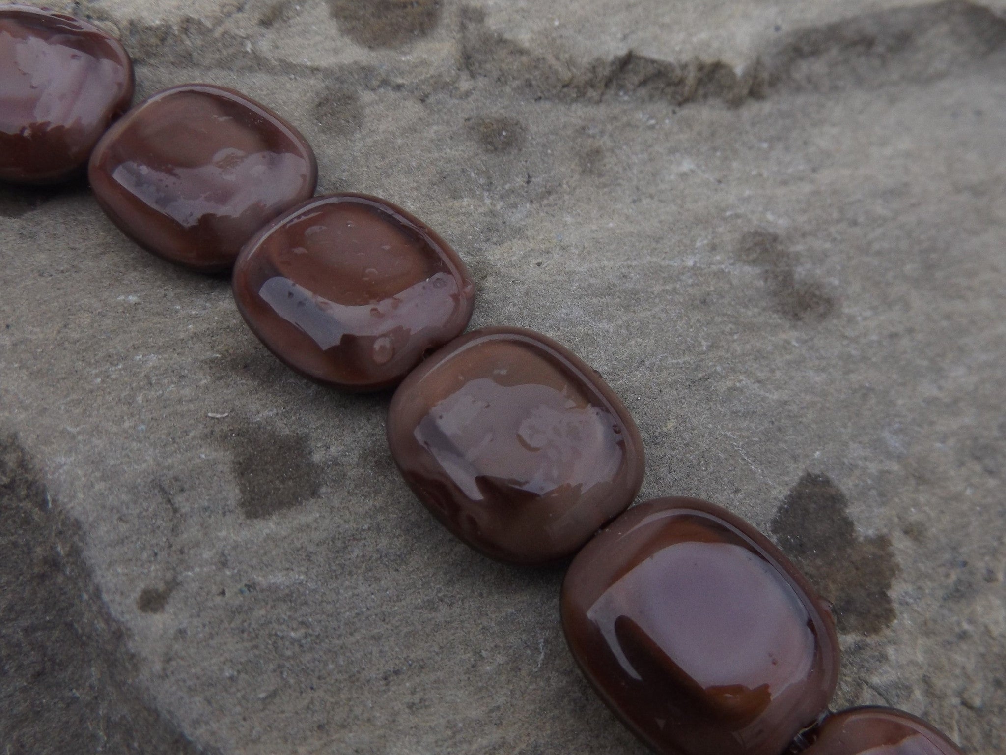 Czech Pillow Shape Glass Beads Shimmering Brown (*7 Beads)