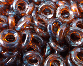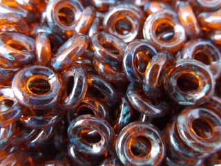 Czech Glass Donuts *AFRICAN SUNSET TRAVERTINE (9 mm Size Hole 4mm)