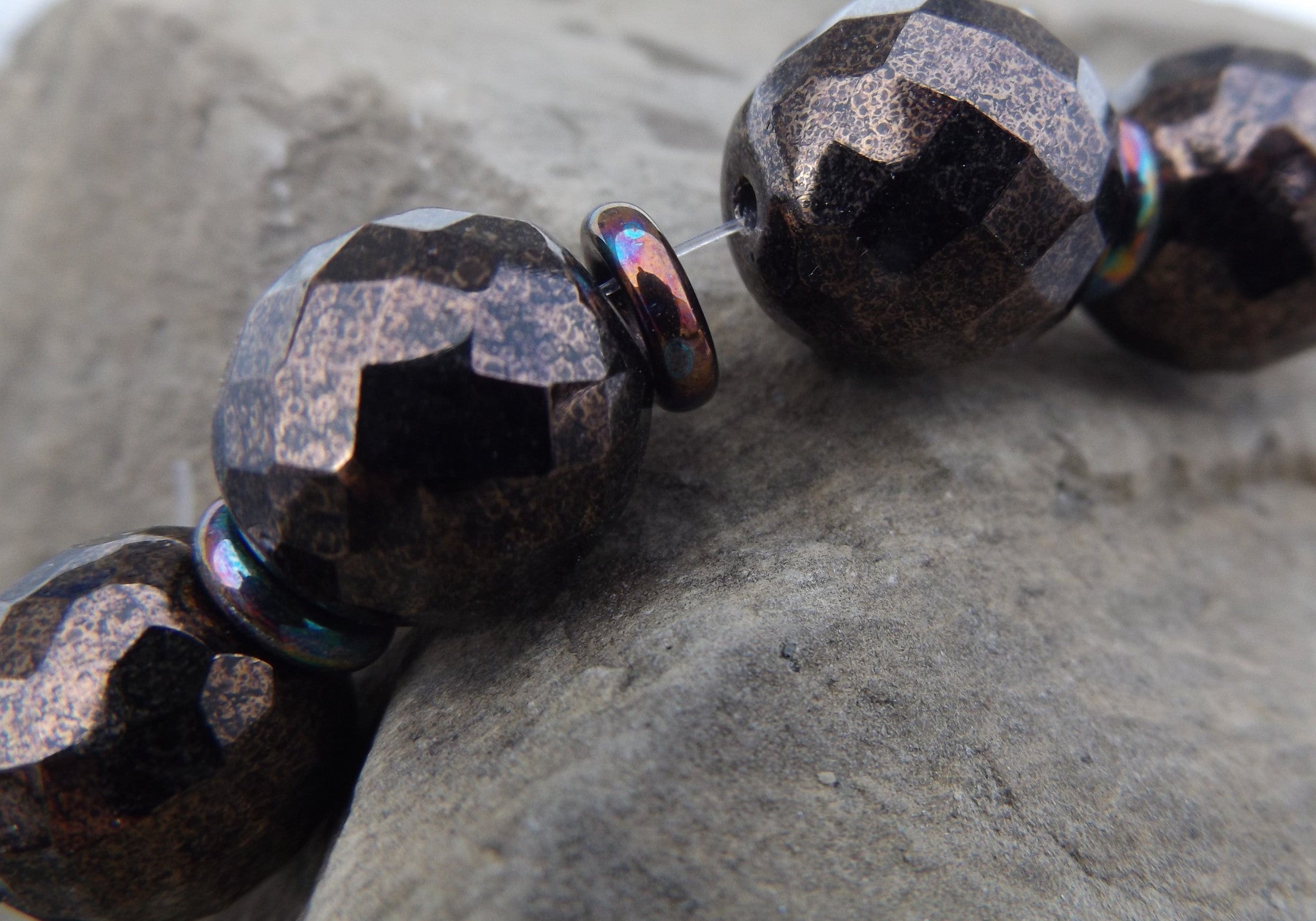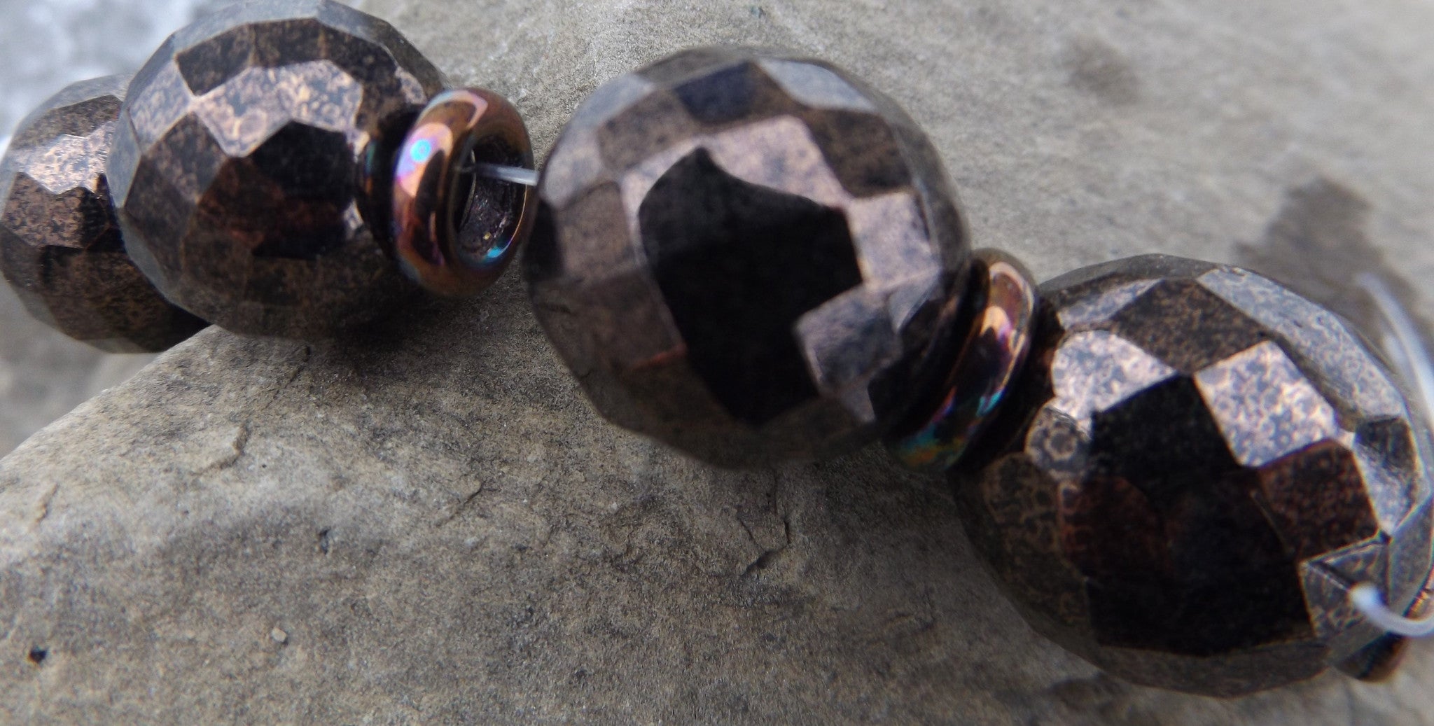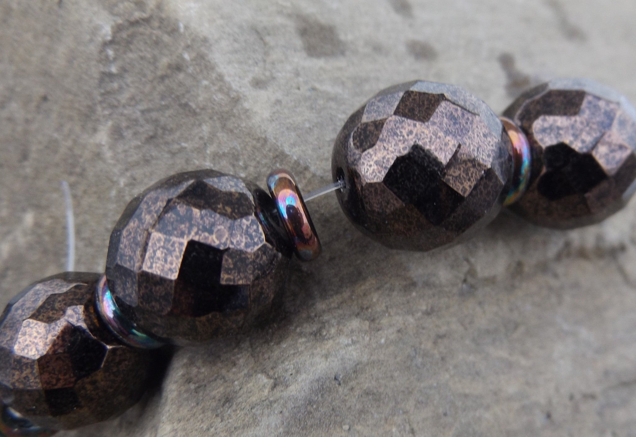 Czech Faceted Shimmering Brown Glass Beads (*4 Beads)