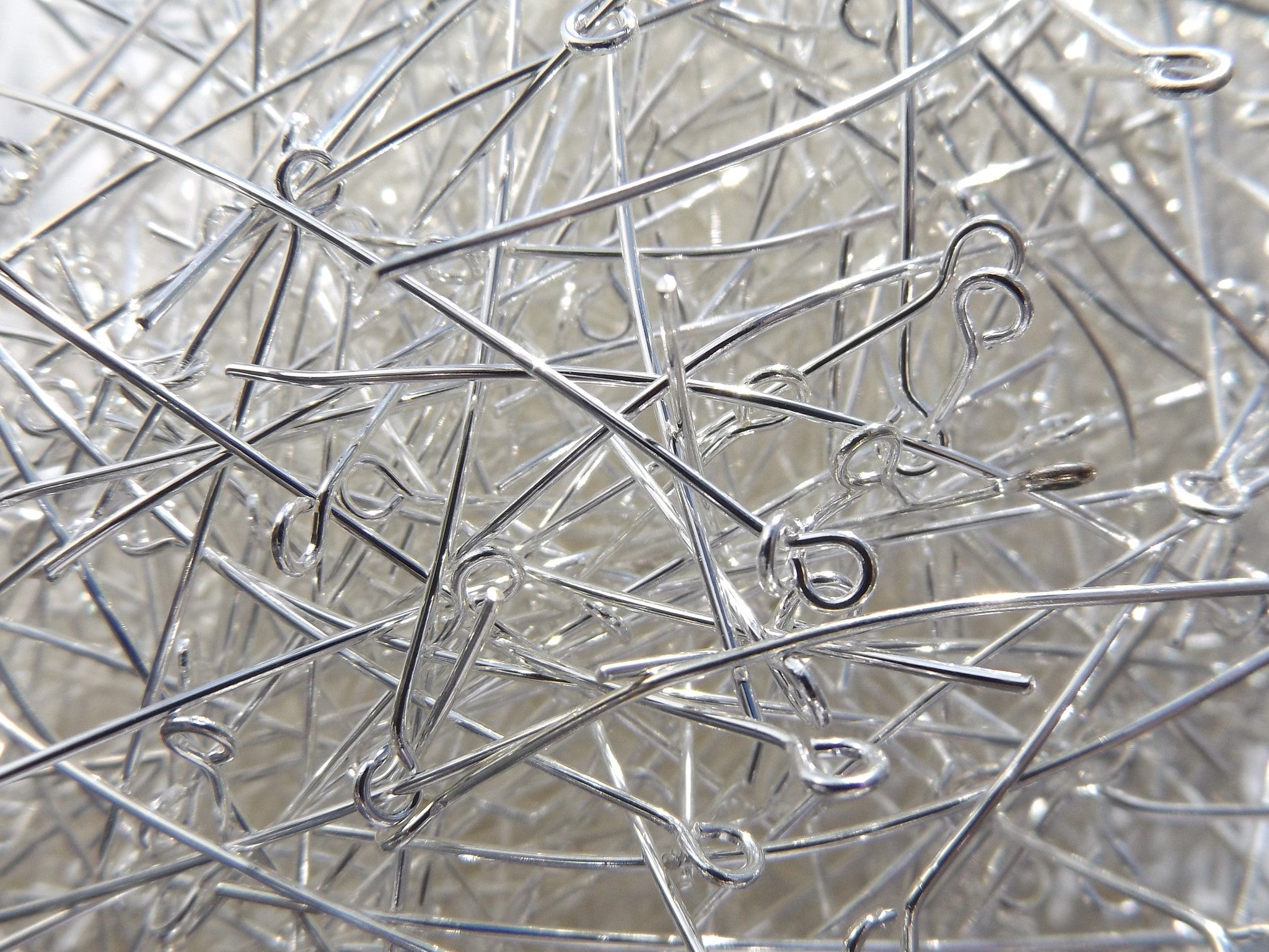 Eye Pin (Brass with Silver Plate) * Bright Silver Color 50x0.7mm, Hole: 2mm (packed 50)