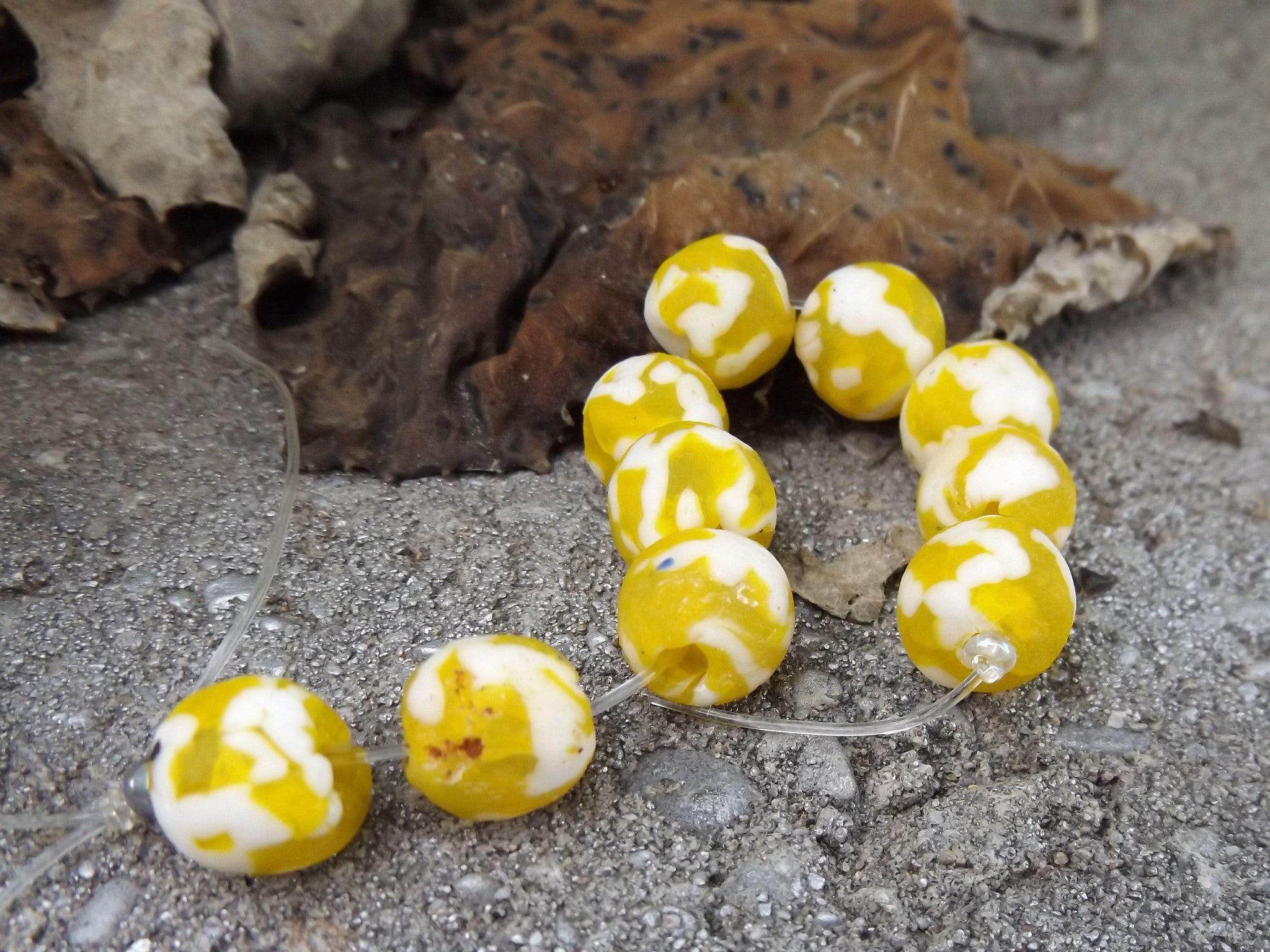 Sand Cast African Recycled Glass Rounds (white and Yellow) * 10 Beads