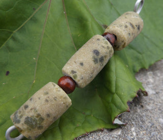 Sand Cast African Recycled Glass (Taupe with Deep Speckles) Barrell *3 Beads