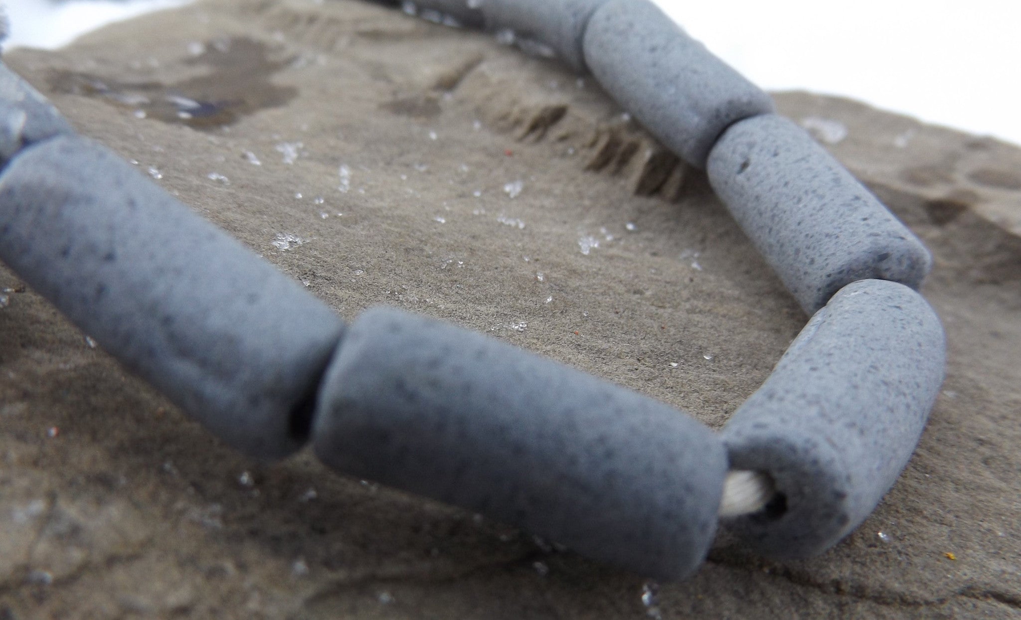 Sand Cast African Recycled Glass (Grey) * 4 Beads