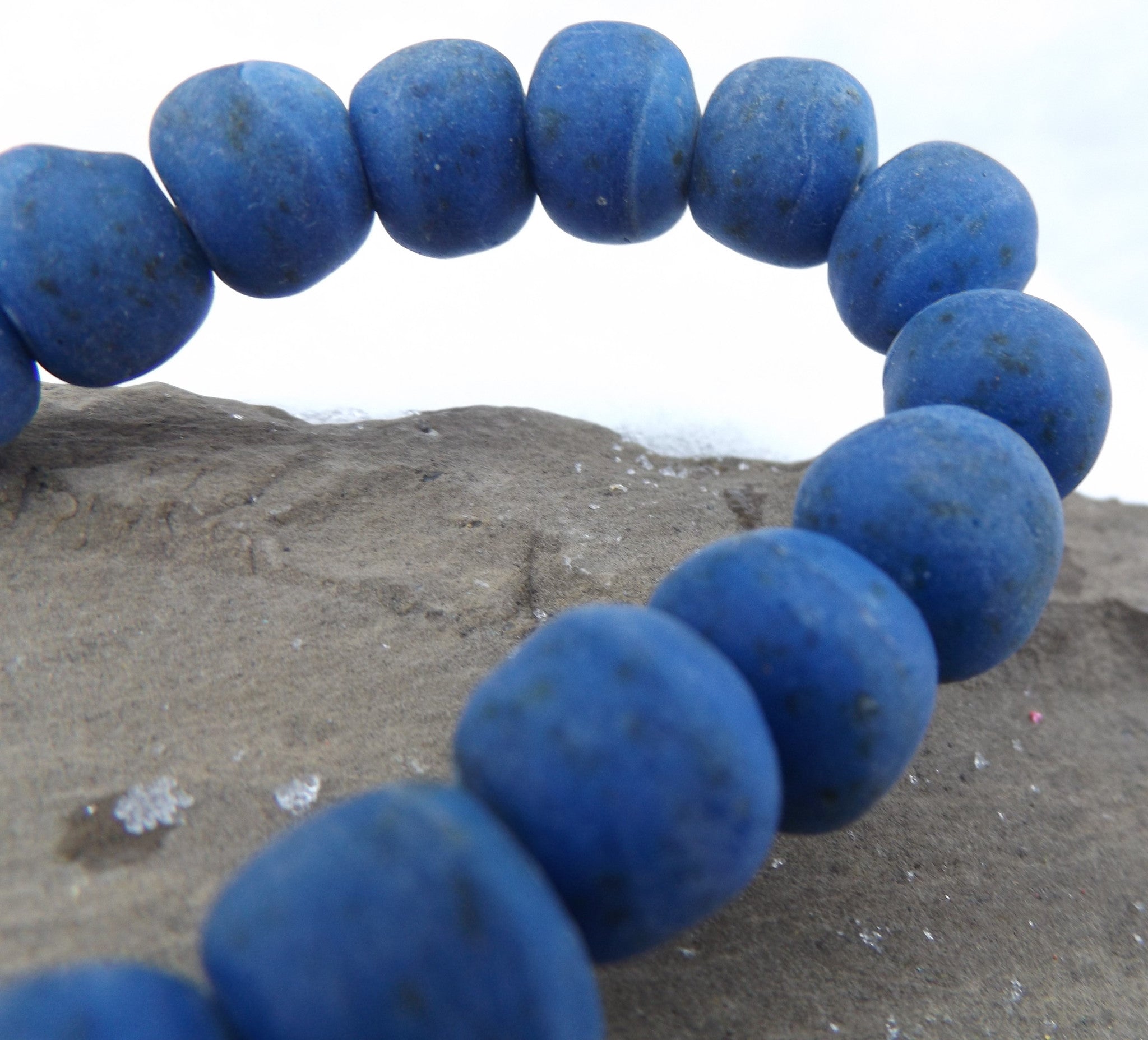 Sand Cast African Recycled Glass Rounds (Dark Blue) * 4 Beads