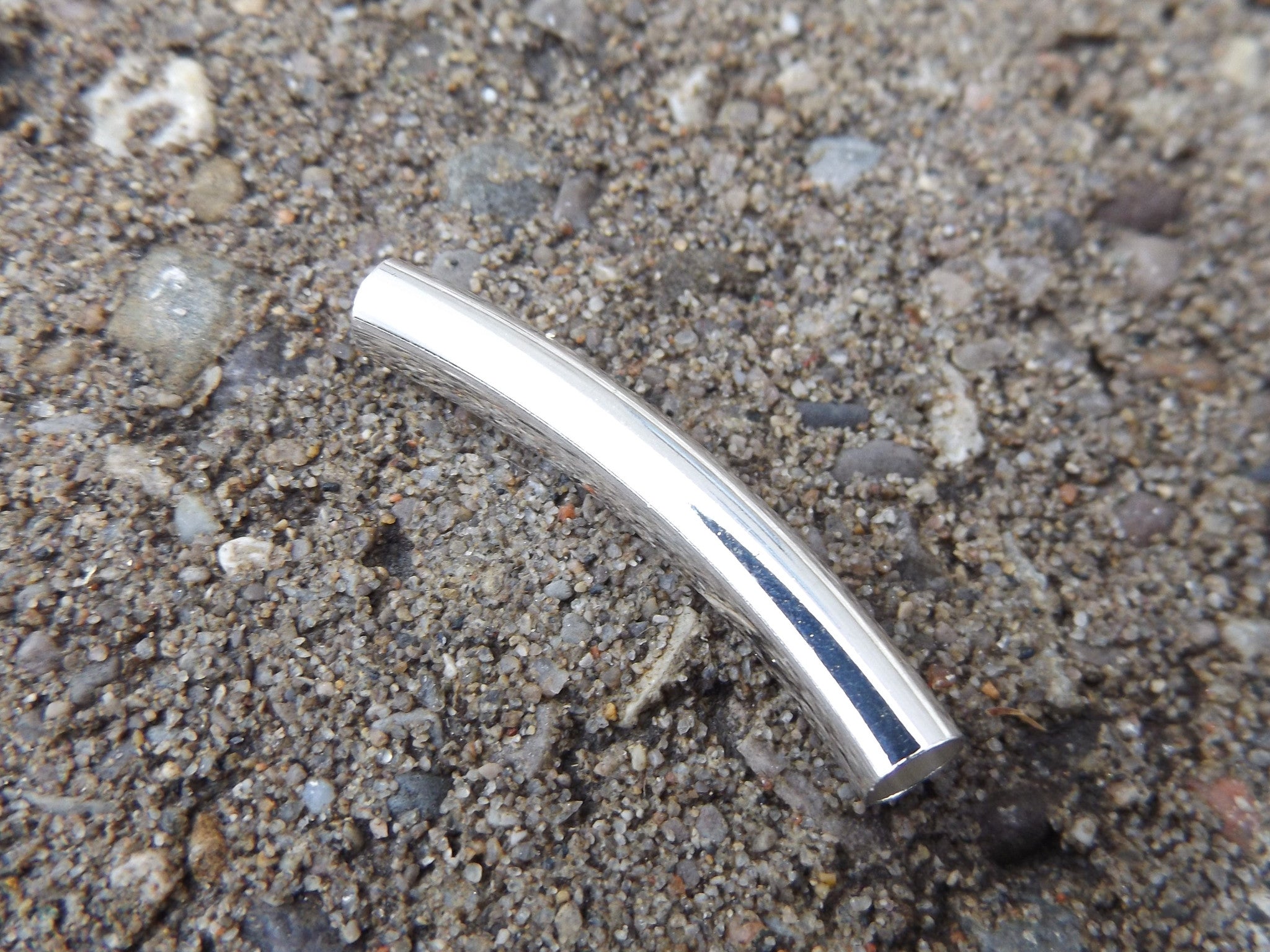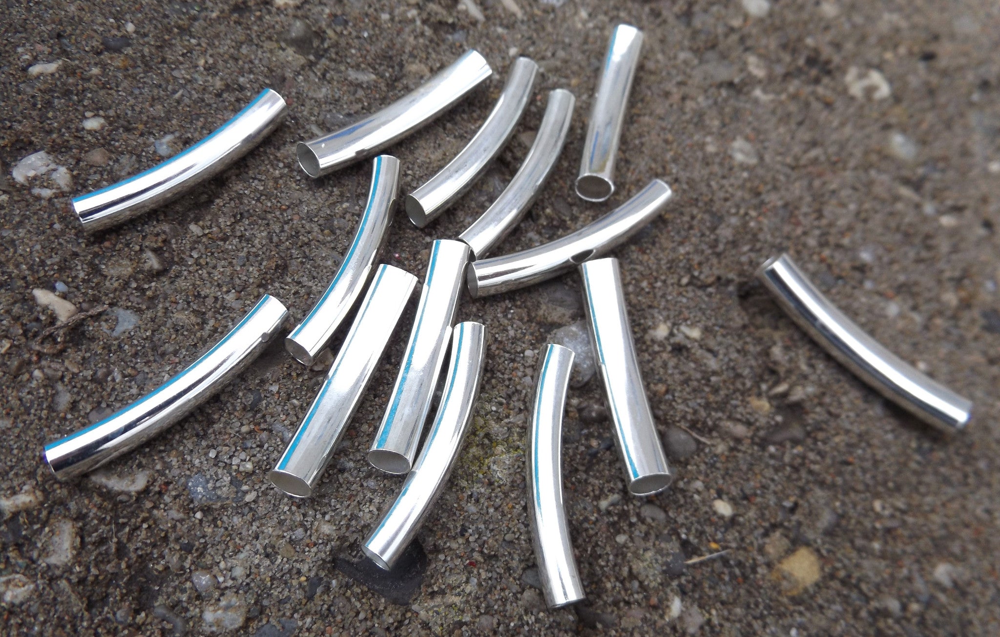 Tube Beads, Brass, Curved, Silver Color, about 5mm wide, 32mm long; hole: 4mm