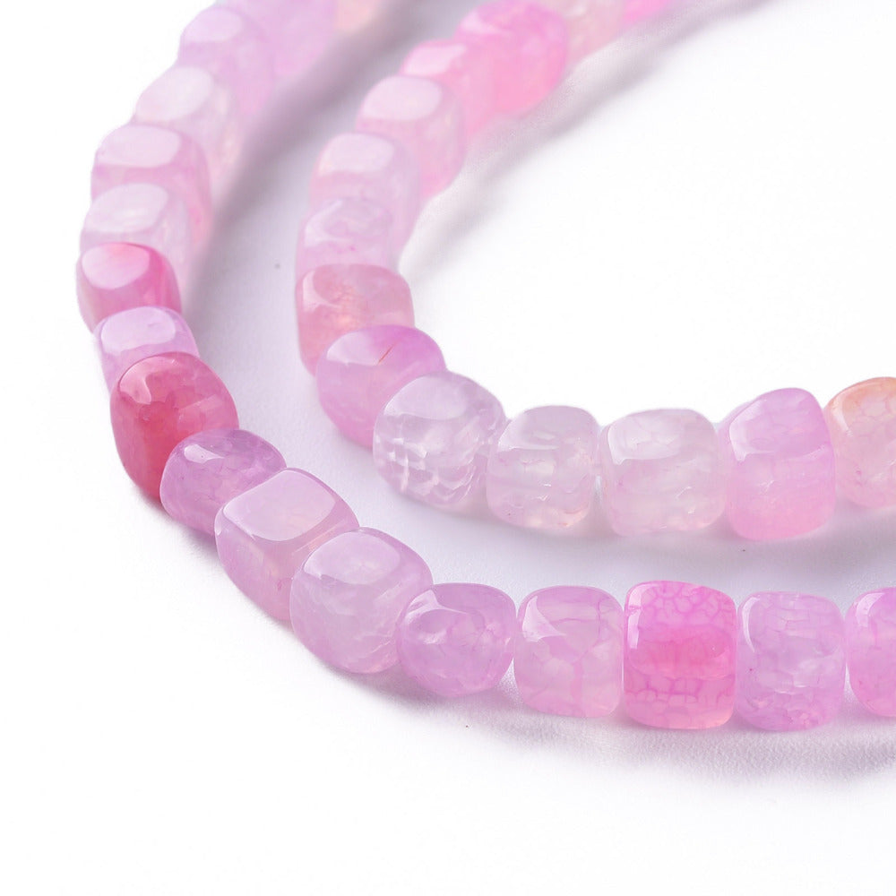 (Crackle Agate) (6-7 mm cubes) 15.5" strand. approx 72 beads. *Pink