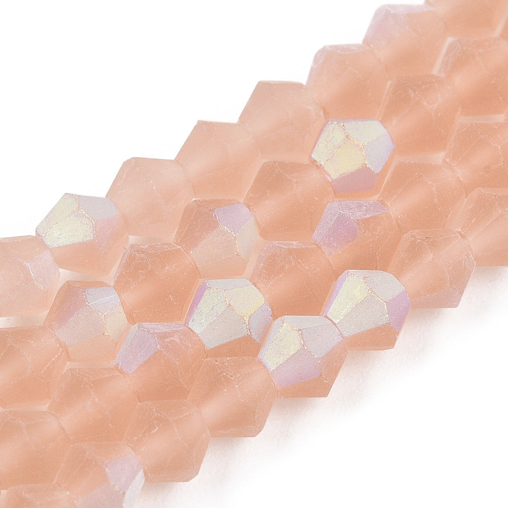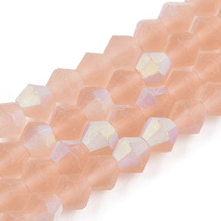 Crystal Bicone Frosted Glass Beads Strands, Grade AA, Faceted, Dark Salmon, 4x4mm, Hole: 1mm, about 87~89pcs/strand