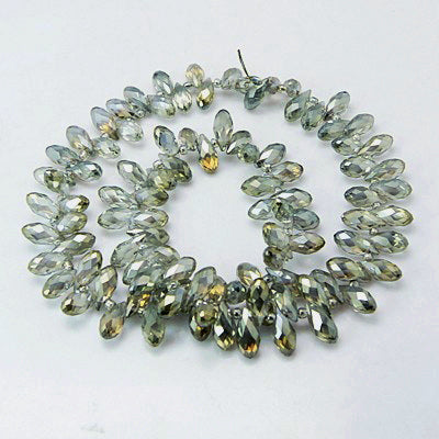 Crystal Glass Beads Strands, Faceted, Drop,Dark Sea Green AB, 12x6mm, Hole: 1mm; about 100pcs/strand, 16.5"