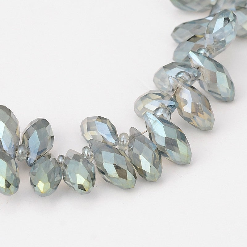 Crystal Glass Beads Strands, Faceted, Drop, Rainbow Plated Aquamarine. 12x6mm, Hole: 1mm; about 100pcs/strand, 16.5"