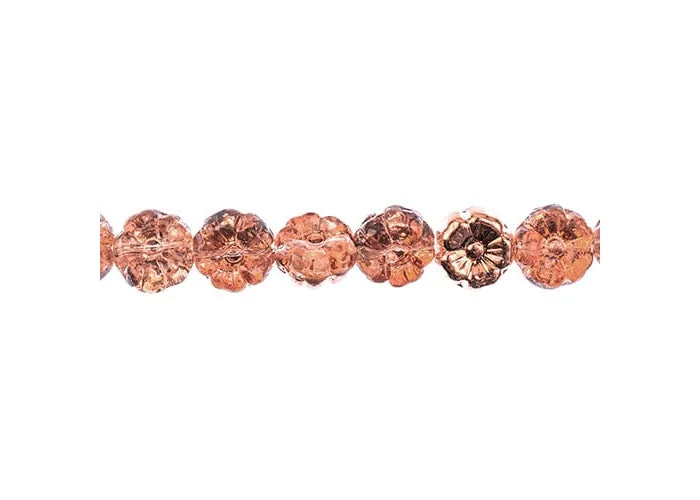 Czech Flower- Glass Bead Cinquefoil Flower Bead - 9mm -Gold on Crystal (Strand Apx 22pcs)