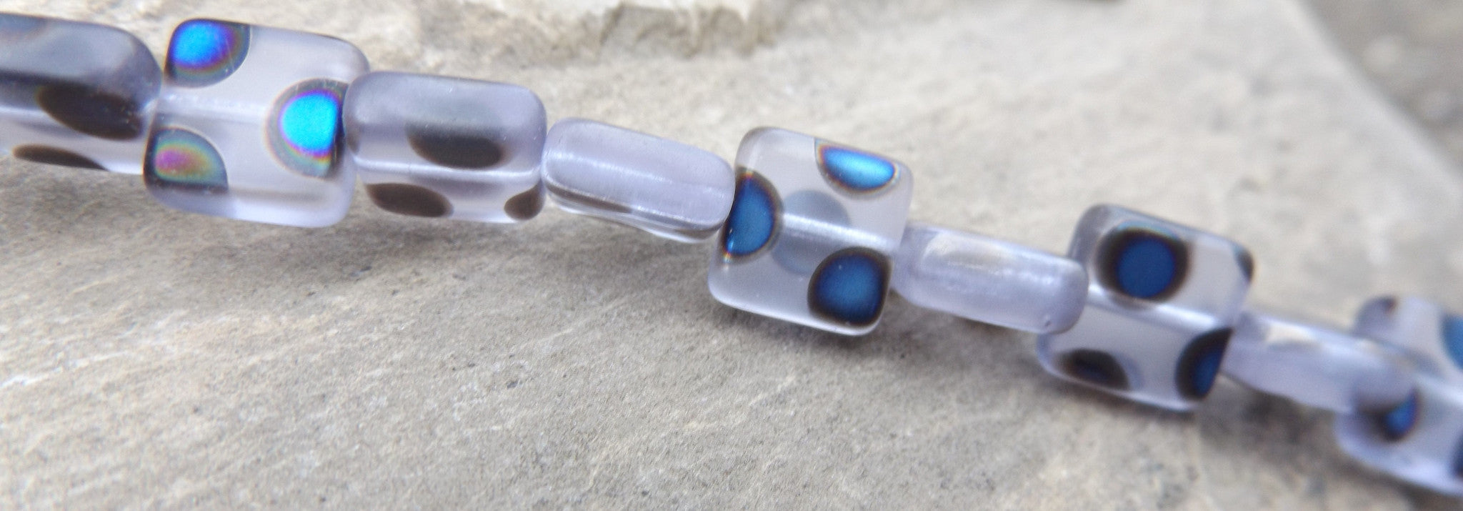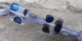Czech Glass Beads Square (Blue with Blue Dots) 10 x 10mm *20 Beads