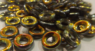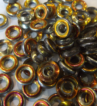 Czech Glass Donuts *Whacked Out Wild (Warm Tones) (9 mm Size Hole 4mm)
