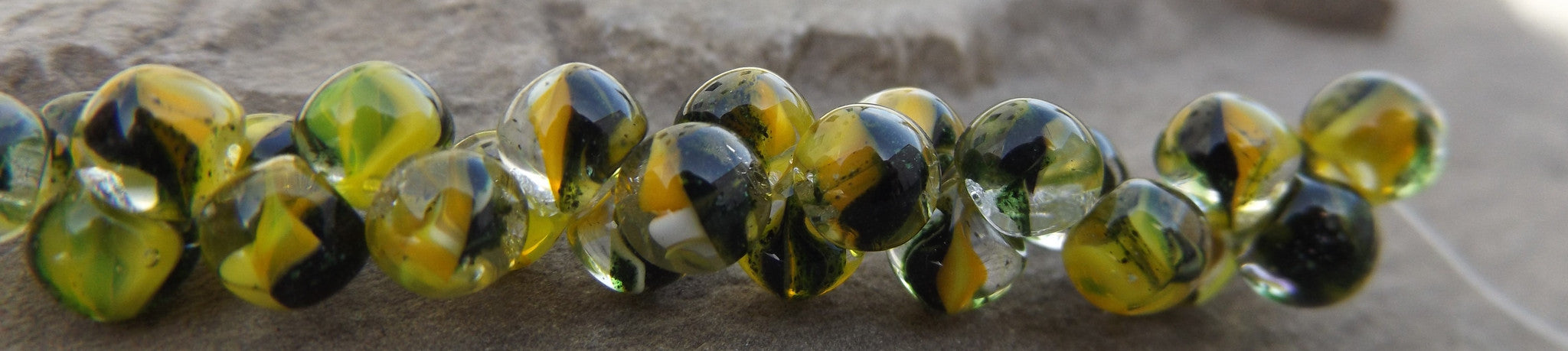 Czech Glass Pinch Beads (Yellow/Green and Black) 5 mm (approx 25 Beads)