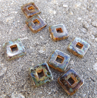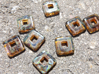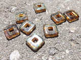 Fabulous Czech Squares to incorportate into your design.  Beautiful Spacers!  11 x 11mm with a 5mm square hole.   Trans Travertine Sand.  Packed 8 or Bulk at 80.