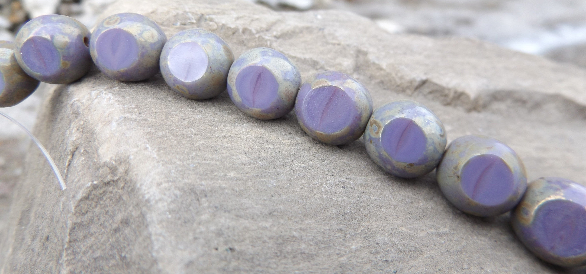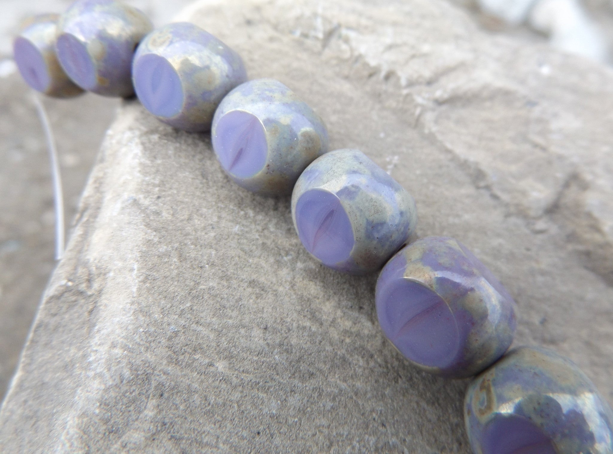 Czech Glass Table Cut Beads (Purple 3 Sided Nuggets) *10 Beads