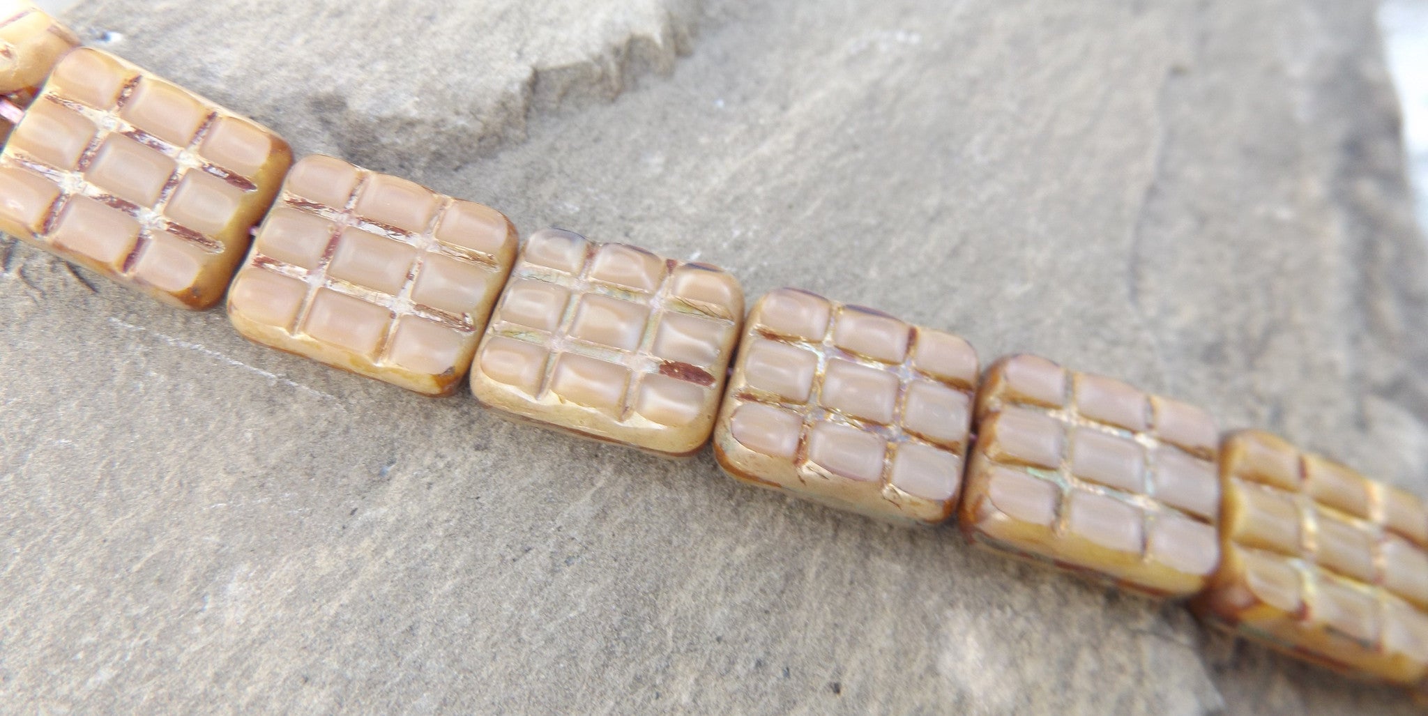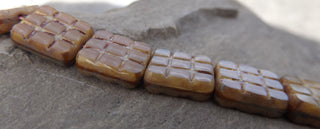 Czech Table Cut Glass Beads (Rectangle) *HoneyComb inTan 15 x 10 mm (12 Beads)