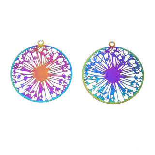 Dandelion Charm/ Pendant. 201 Stainless Steel Filigree Etched Metal Embellishments, Dandelion, Rainbow Color, 27x25x0.2mm, Hole: 1.4mm