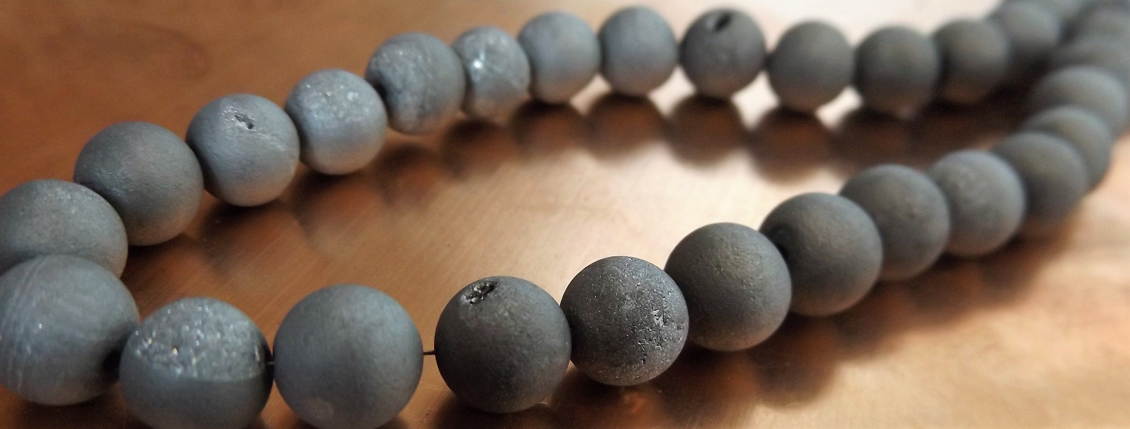 Electroplated Natural Druzy Geode Agate Beads. (Matte Grey 8-9 mm Rounds) approx 46 beads