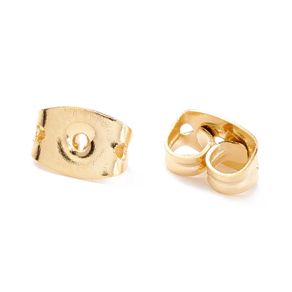 Ear Nuts, Real 18K Gold Plated over Brass, 6x4x3.5mm, Hole: 1mm(Packed 20)