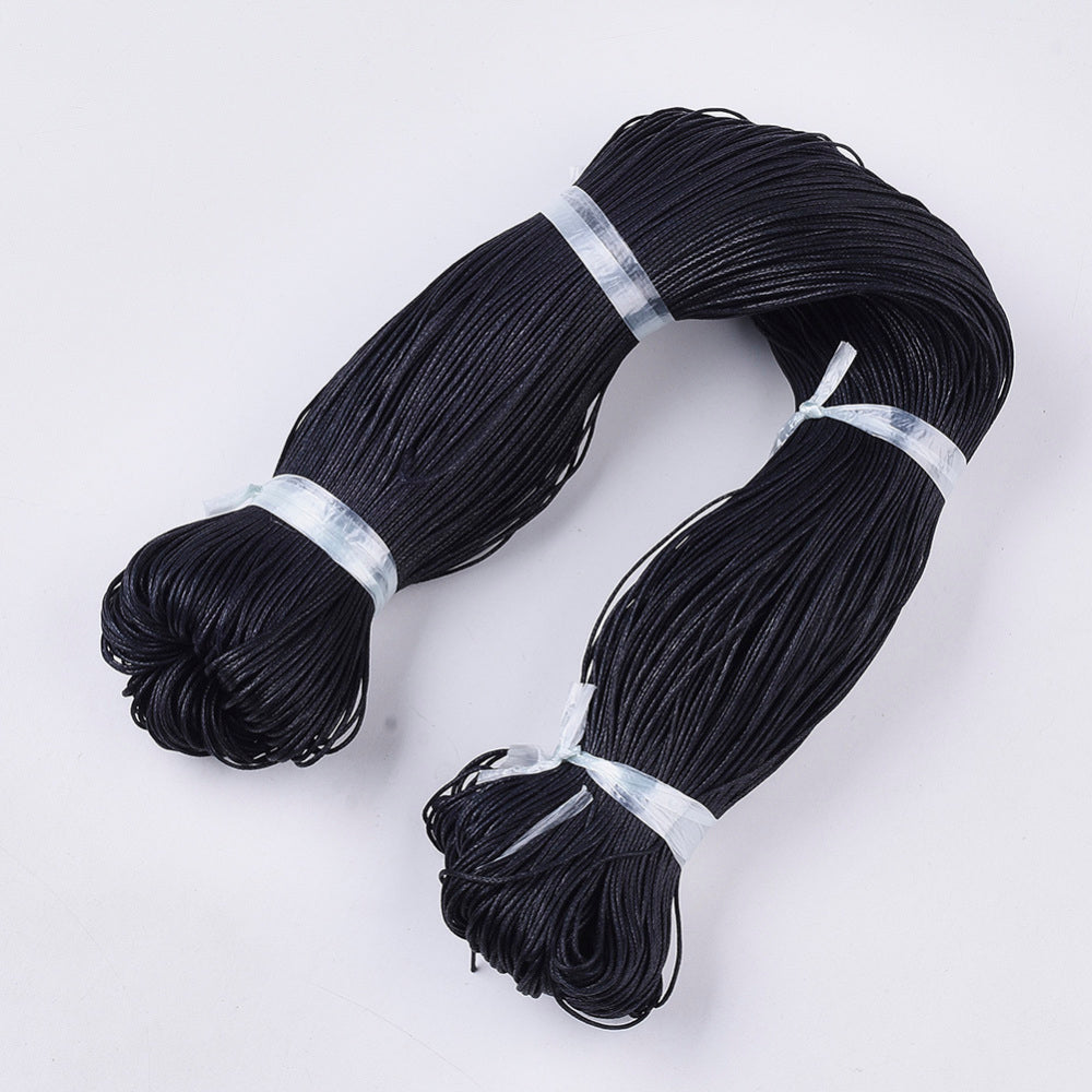 Eco-Friendly Waxed Cotton Cord, 100% Cotton Thread, for Macrame, Jewelry Making Beading Crafting, Black, 1mm, about 382.76 yards(350m)/bundle