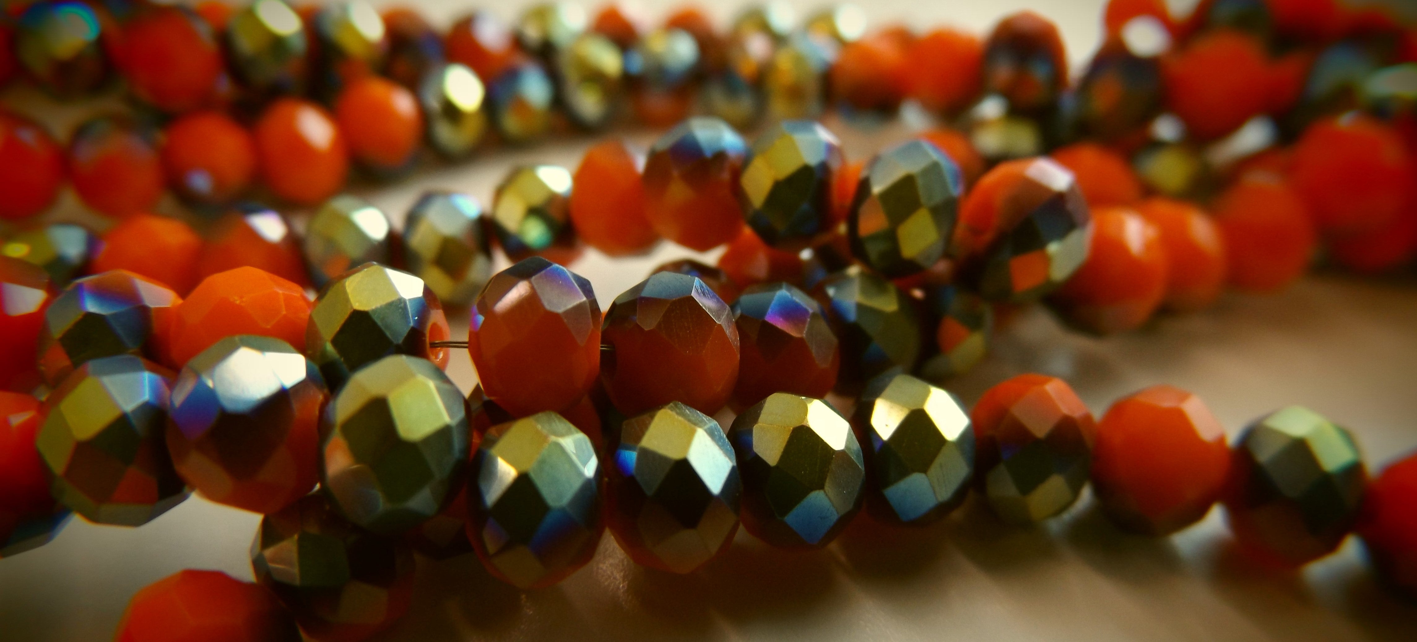Electroplate Glass Beads, Faceted, Rondelle, (Pumpkin Orange), 6x4.5mm, Hole: 1mm;