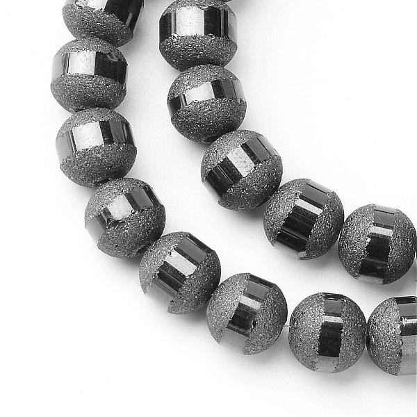Electroplate Glass Beads, Frosted. Black with Black Band. *See Drop Down For Size Options