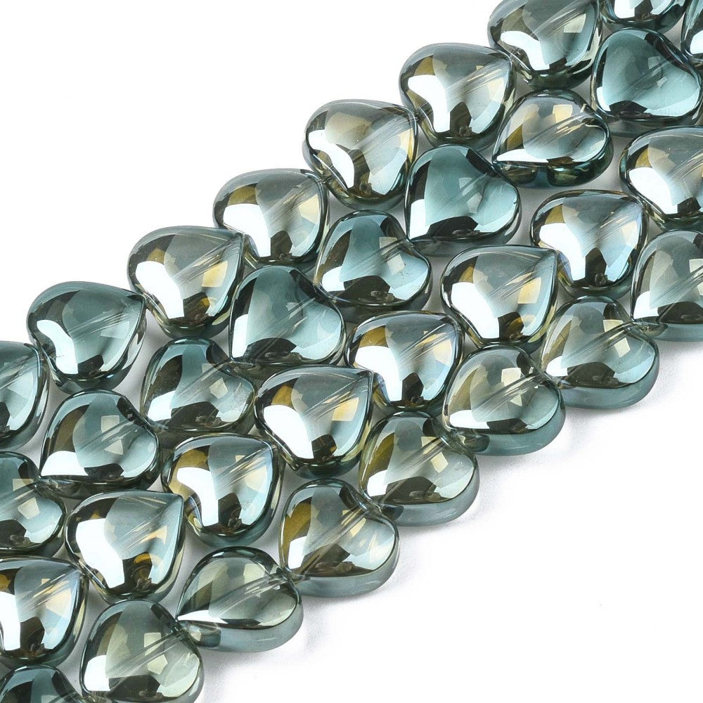 Electroplate Glass Beads Strands, AB Color, Heart, 9~10x10x5.5mm, Hole: 0.8mm, approx 70 Beads. *See Color Options.