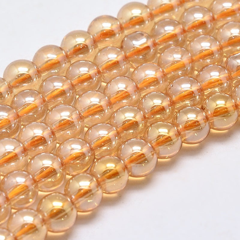Electroplate Glass Round Bead Strands, Full Pearl Luster Plated, Grade AA, Soft Peachy Orange, 8mm, Hole: 1mm, about 53pcs/strand,15.7 inch