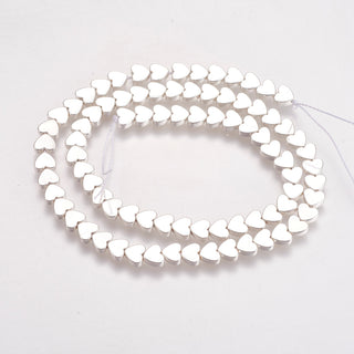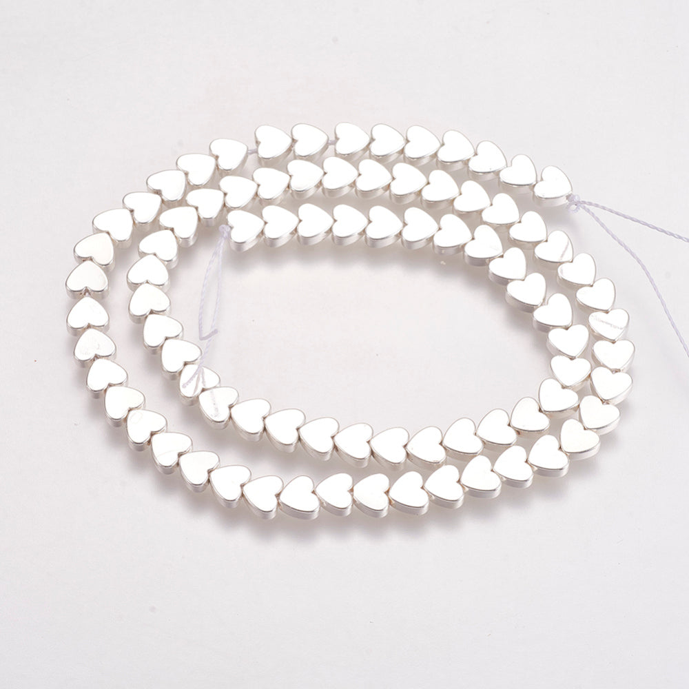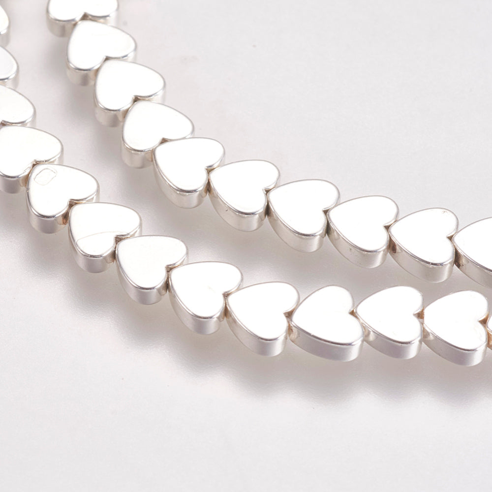 Electroplate Non-magnetic Hematite Beads Strands, Heart, Silver Plated, 5x6x2mm, Hole: 1mm, about 81~83pcs/strand, 16.1 inch~16.5 inch