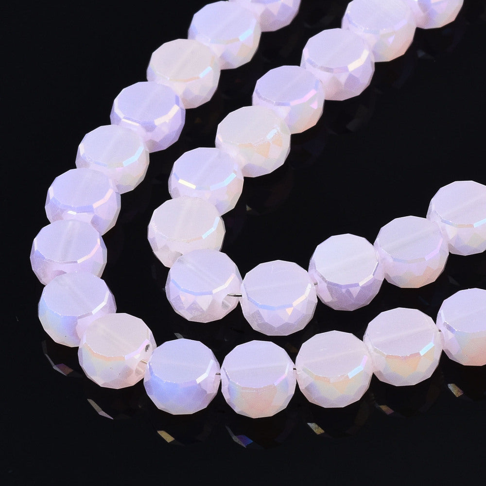 Electroplate Transparent Glass Beads Strands, AB Color Plated, Glass, Faceted, Flat Round, Lavender, 5.5x6x3.5mm, Hole: 1.2mm, about 98~100pcs/strand