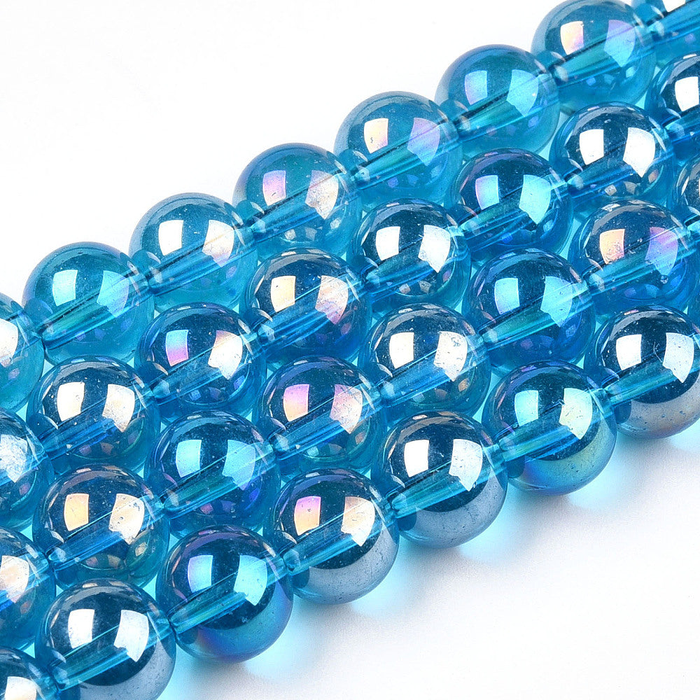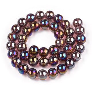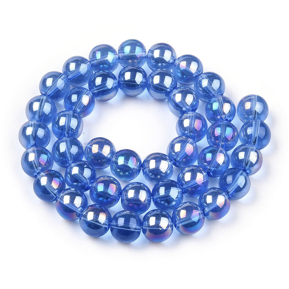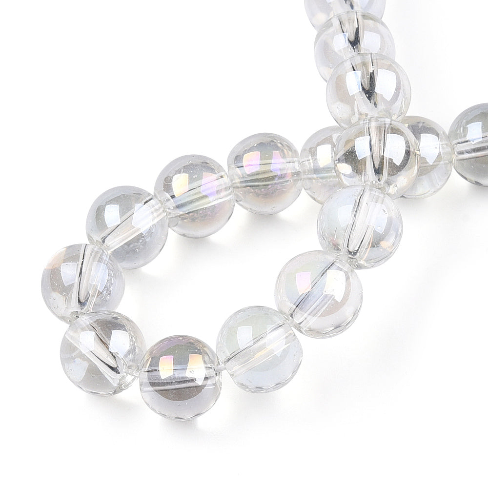 Electroplate Transparent Glass Beads Strands, AB Color Plated, Round, 9.5~10mm, Hole: 1.5mm, approx 40 Beads. *See Color Options