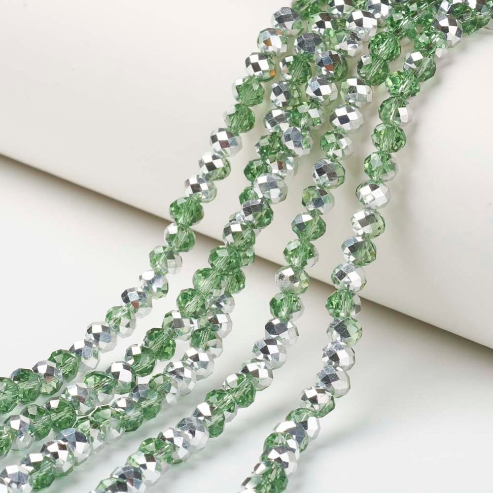 Electroplate Transparent Glass Beads Strands, Half Silver Plated, Faceted, Rondelle, Dark Sea Green, 10x8mm, Hole: 1mm,. (Approx 30 Beads)