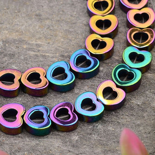 Electroplated Heart Non-magnetic Synthetic Hematite Bead Strands, Multi-color Plated, 7.5x7.5x3mm, Hole: 1mm, approx 50 Beads.
