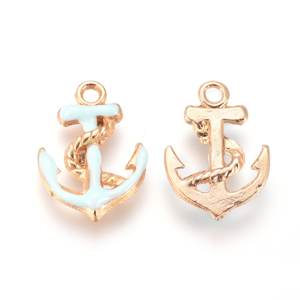 Enamelled Charm. Anchor, Light Cyan, 17x12x3mm, Hole: 2mm