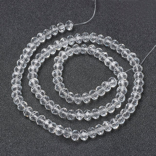 Faceted Glass Bead Strands, Crystal Clear. 3.5 x 3mm, Hole: 0.8mm; *Approx 150 Beads.