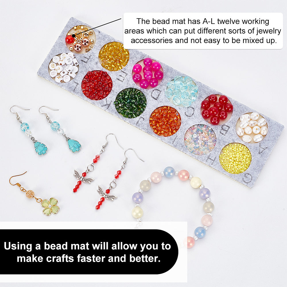 Felt Bead Board/Bead Mat/ Beading Design Tray/ Bead Organizer with Lettered Compartments. 8.6x2.5inch. Sold Individually.