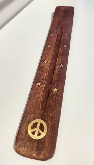 Flat Wooden Incense Holder. Peace