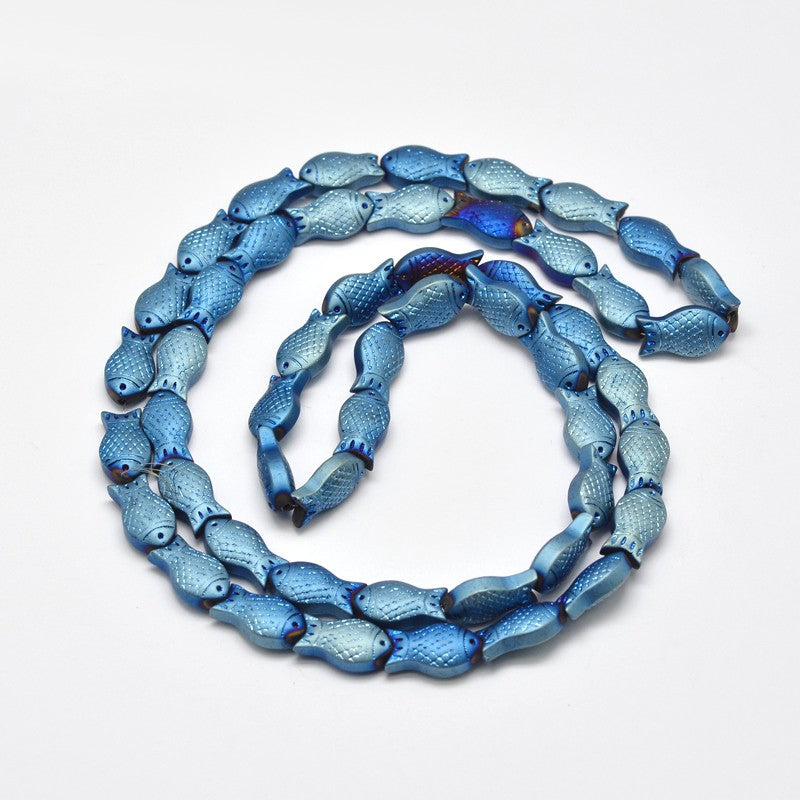 Full Plated Frosted Electroplate Glass Fish Beads Strands, Green Plated, 15x8x5mm, Hole: 1mm, *Approx 30 Beads.