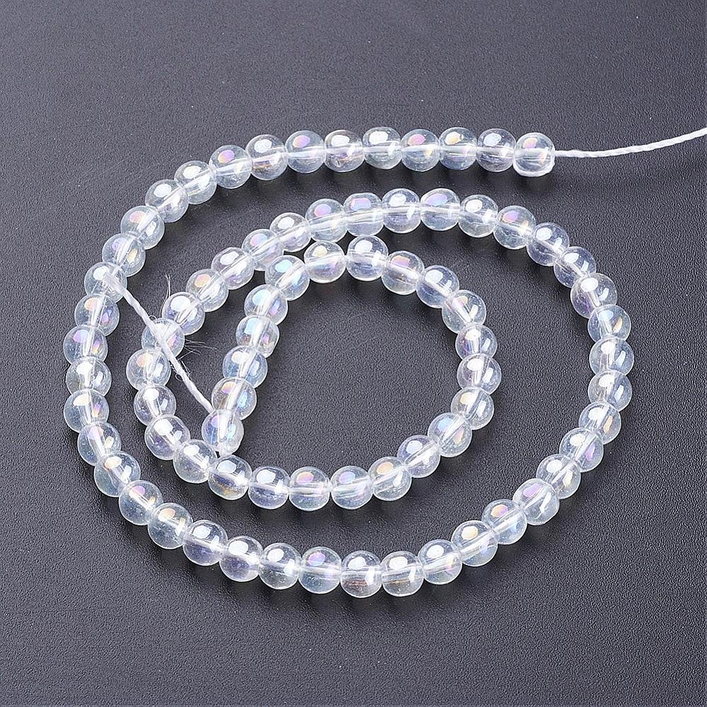 Glass Bead Strands, Round, AB Color Plated, Clear AB, 8mm, Hole: 1mm, *Approx 40 Beads, 14 inch
