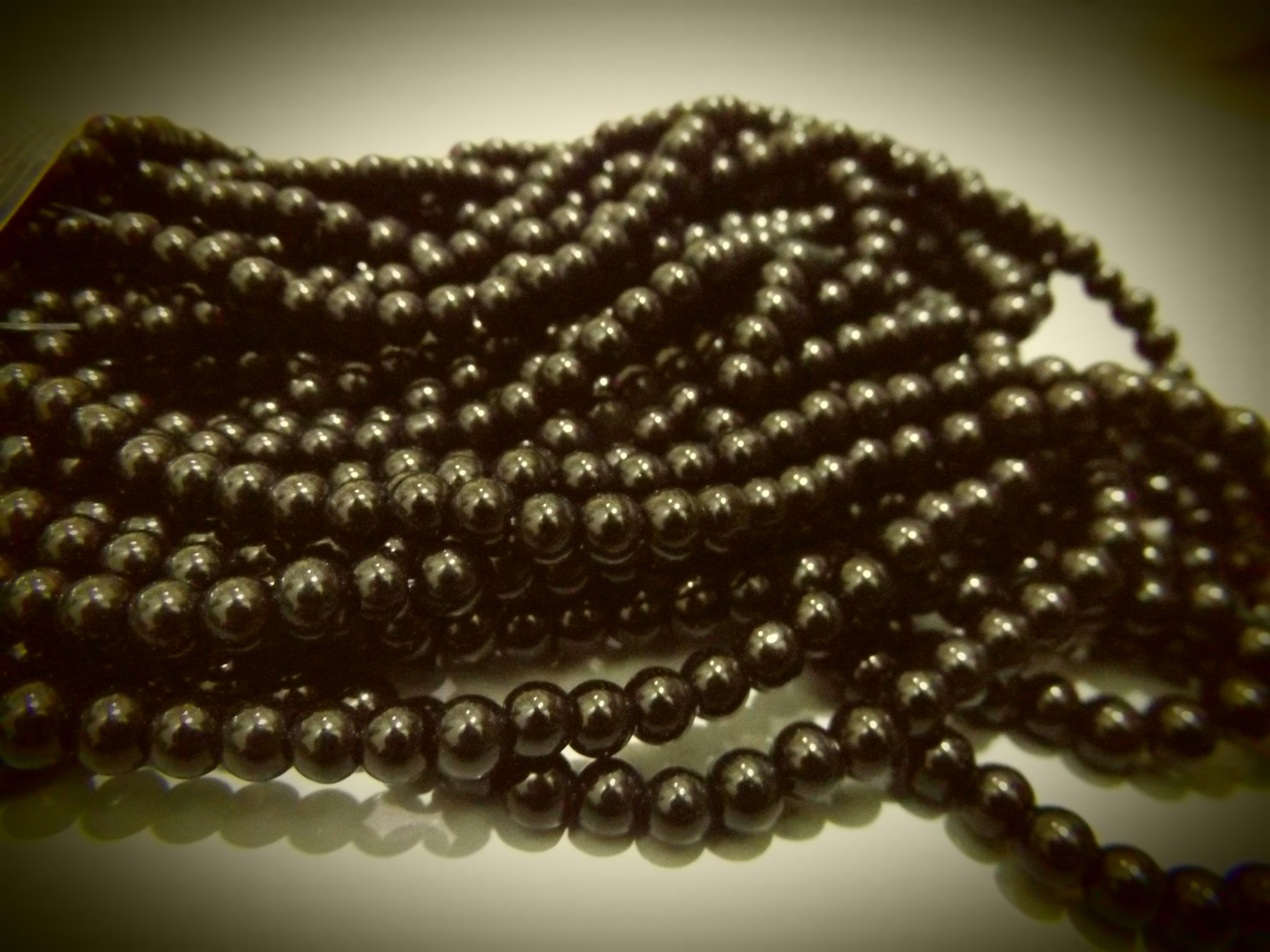 Glass Beads (Black) 6mm Round. 15.5" strand