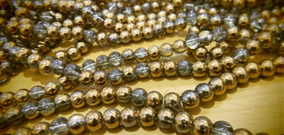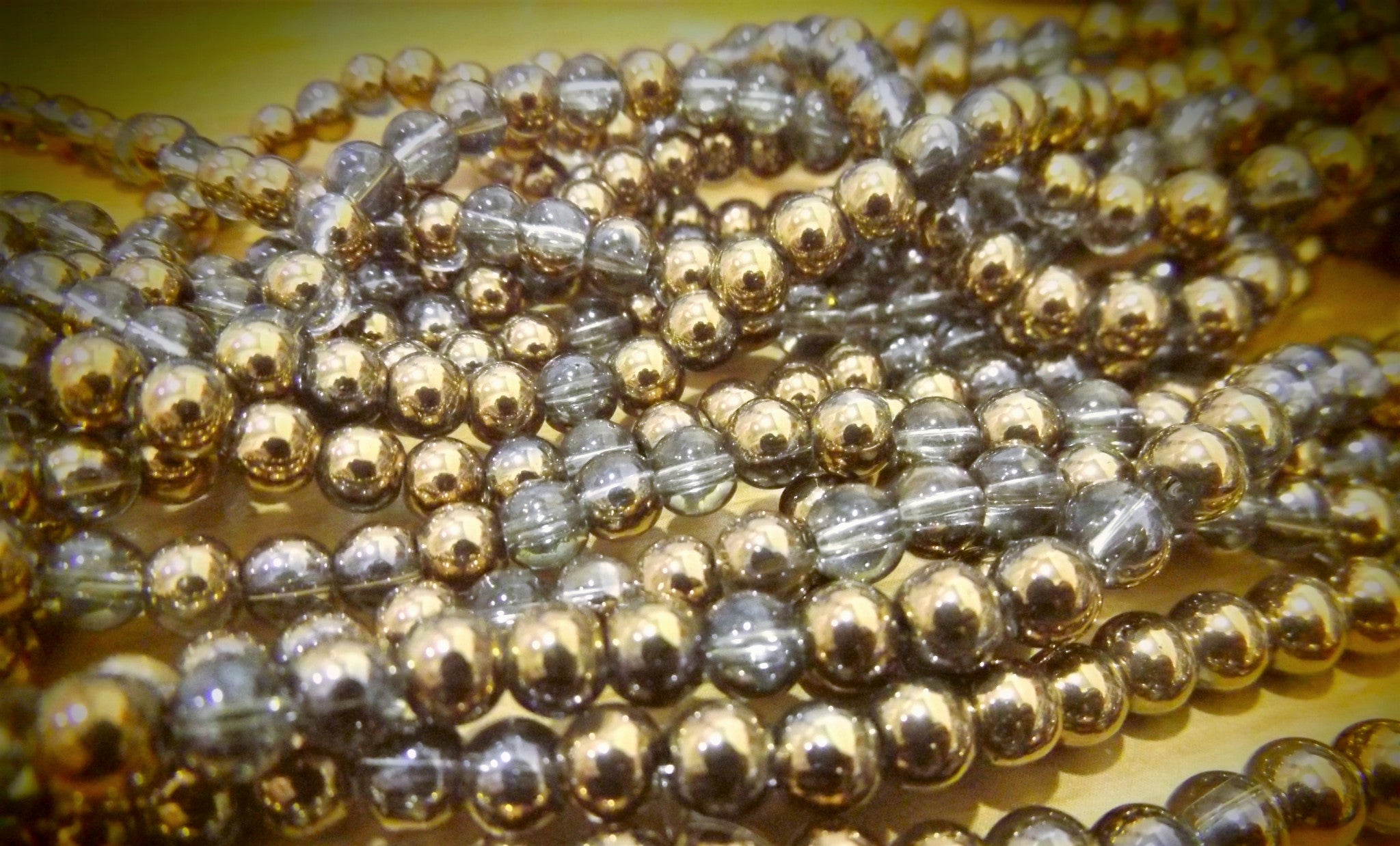 Glass Beads (Half Plated Copper) 5.5 to 6.5mm rounds. (approx 68 beads per 15" strand)